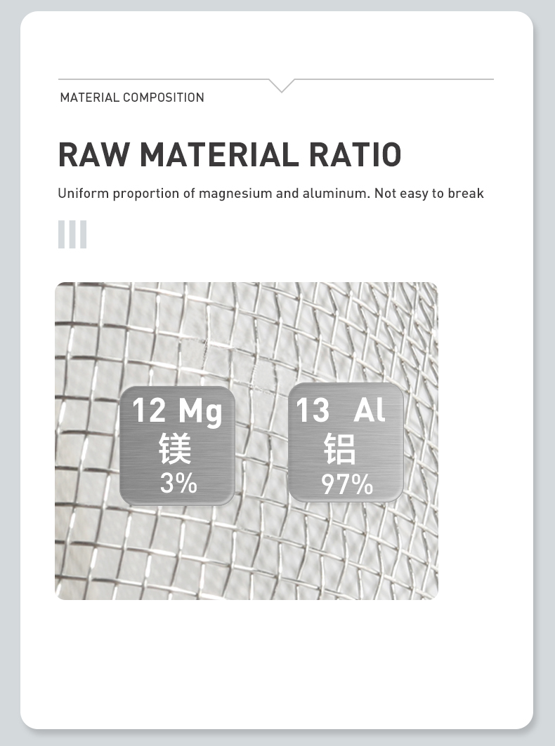 Aluminum Mesh is an ideal choice for both residential and industrial applications due to its durability and lightweight design. Made from high-strength aluminum alloy, it resists rust and corrosion, maintaining stable performance even in humid or high-temperature environments, making it perfect for coastal and high-humidity areas.Aluminum’s natural oxidation resistance prevents rust and mold, ensuring the mesh stays in good condition over long-term use. It is widely used in windows, balconies, and door screens, providing insect and dust protection while maintaining ventilation, improving living conditions.