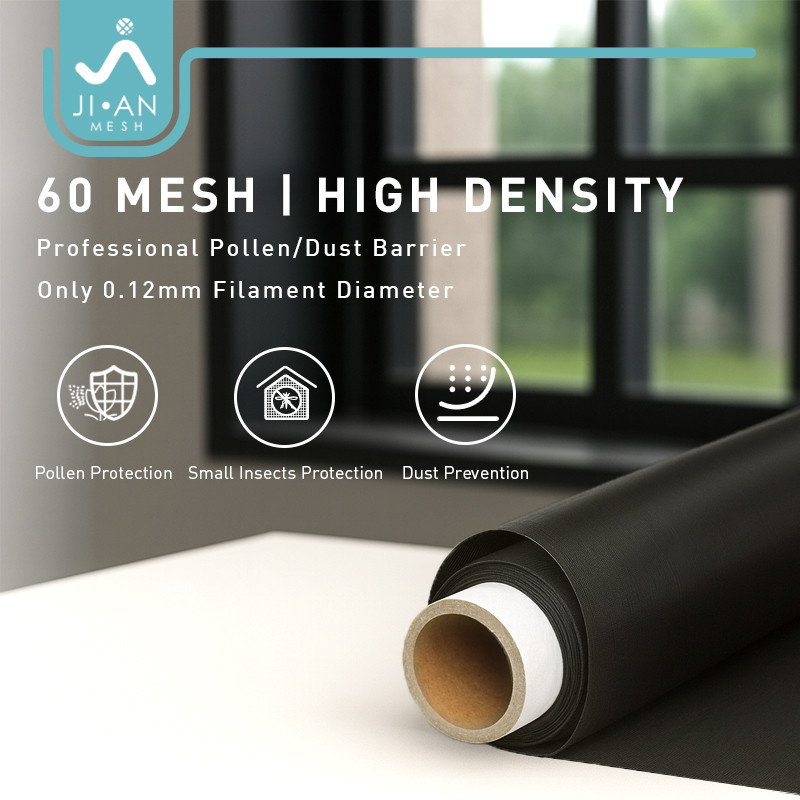 60 Mesh Tiantu PET Insect Screen is a high-density polyester insect screen designed for premium windows and doors. Made from high-strength PET with 60 mesh and approx. 0.12 mm filament, it effectively blocks fine dust, pollen and tiny insects while maintaining good airflow and visibility. The 3% carbon black formulation offers excellent UV resistance and long color stability after 1000 h UV testing. With very low thermal shrinkage and outdoor durability, it is ideal for invisible screens and anti-pollen window systems.